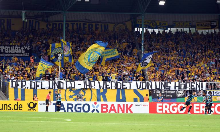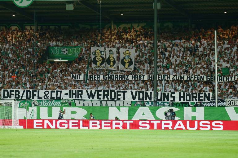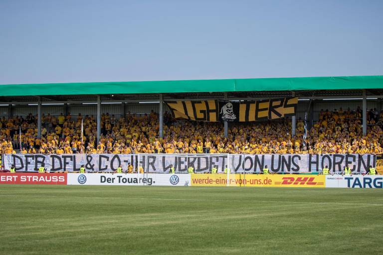 "Bereits vor einem Jahr hatten wir lautstark gegen den DFB protestiert. Nach anfänglichen Erfolgen - der Verband setzte vorübergehend die Kollektivstrafen gegen Fankurven aus - zogen DFB und DFL jedoch wieder Daumenschrauben an. Fortan finden die unliebsamen Montagsspiele auch in der 3. Liga statt. Weitere Versprechungen entpuppten sich als Lippenbekenntnisse. Noch immer müssen wir an den Eingängen der Stadien über die Längen unserer Fahnenstecken diskutieren. Noch immer ist es dem DFB nicht gelungen, sich klar und unmissverständlich zur 50+1 Regeleung zu bekennen.