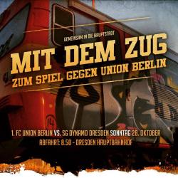 Die Fans von Dynamo Dresden werden am 28. Oktober gemeinsam zum Spiel gegen Union Berlin reisen. Abfahrt ist um 8:50 Uhr am Dresdener Hauptbahnhof.