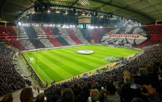 Auch im zweiten Heimspiel der EuropaLeague begrüßten die »Ultras Frankfurt 1997« ihre Mannschaft und Europapokal-Rückkehrer mit einer tribünenübergreifenden Choreografie