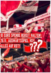 Die Fanszene von Union Berlin hat vor dem Auswärtsspiel in Hamburg mit einem Flyer auf einen Kauf von einem Schal aufmerksam gemacht. In Hamburg soll für das Motto "Alles auf Rot!" auch ein einheitlicher Schal im Block getragen werden. 10€ wird der Schal kosten.