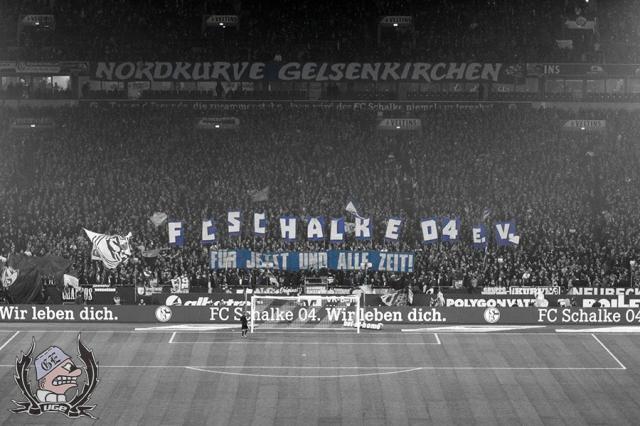 In der Fankurve von Schalke war zu lesen: "FC Schalke 04 e.V. - Für jetzt und alle Zeit!"