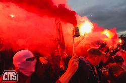 Die Fanszene des 1. FC Köln hat beim Auswärtsspiel in Darmstadt eine Pyroshow gezeigt.