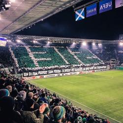 Beim Europacup-Heimspiel haben die Fans von Rapid Wien eine Choreo zum 13.12 gezeigt. In der Fankurve war groß „1312“ zu sehen. Vor der Kurve hing ein Banner mit der Aufschrift: