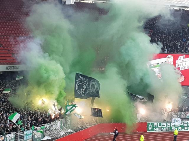 Die Fanszene von Werder Bremen hat beim Auswärtsspiel in Nürnburg eine sehenswerte Pyroshow gezeigt.
