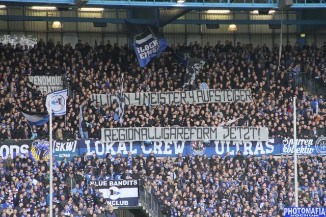 Sowohl die Fanszene von Bielefeld, als auch von Bochum haben mit Spruchbändern für die Regionalligareform ausgesprochen.