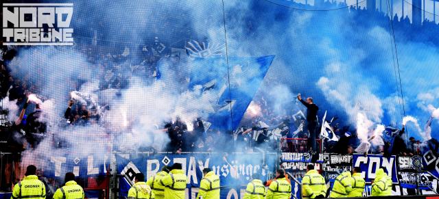 Die Fanszene des HSV hat vor dem Derby gegen St. Pauli einen Fanmarsch organisiert, und während des Spiels eine Pyroshow gezeigt.