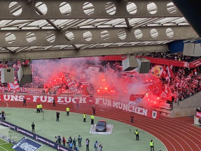 Die Fanszene des FC Bayern hat beim Derby gegen Nürnberg eine Pyroshow gezeigt.