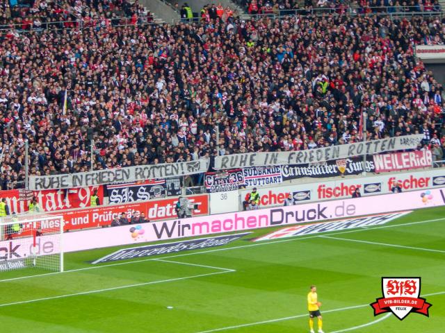 Die Fanszene des VfB Stuttgart hat Rotten und Sascha mit Spruchbändern gedacht.