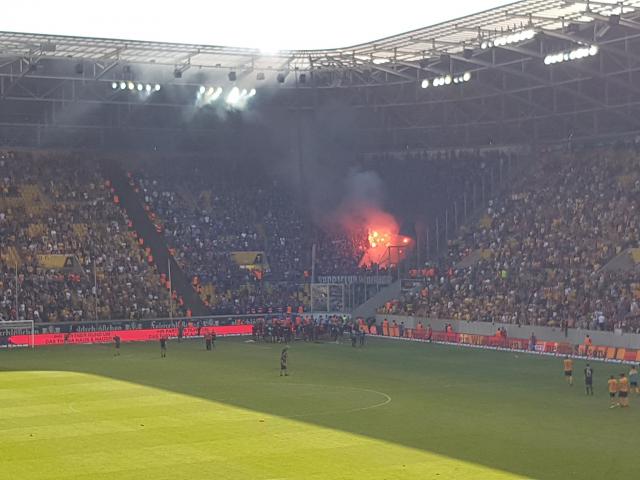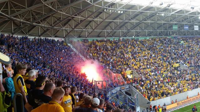 Die Fans von Paderborn haben in Dresden Pyrotechnik gezündet.