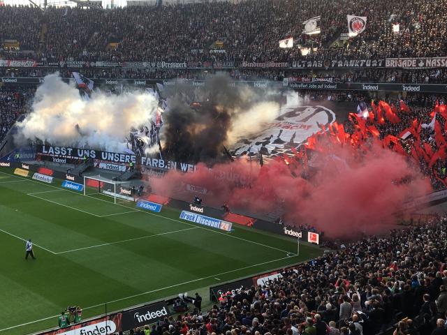 Die Fanszene von Eintracht Frankfurt hat gegen Mainz eine Choreo mit Rauch gezeigt.