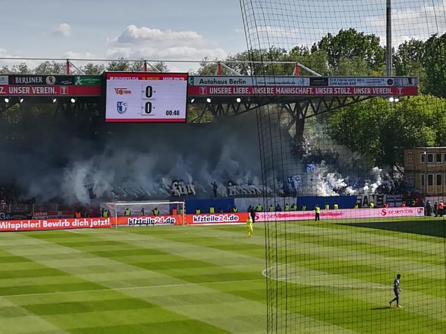 Die Fanszene von Magdeburg hat gegen Union Berlin eine Pyroshow gezeigt.