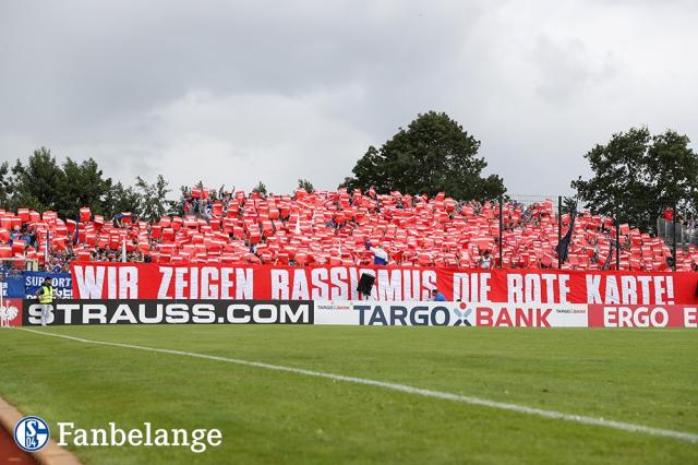Die Fans von Schalke 04 haben beim DFB-Pokalspiel in Drochtersen dem Aufsichtsratschef von S04 und dem Rassismus mit einer Choreo die rote Karte gezeigt. Eine Stellungsnahme zur Causa Tönnies ist auf www.ultras-ge.de nachzulesen.