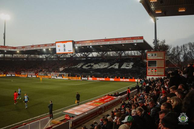 Die Fans von Borussia Mönchengladbach haben beim Auswärtsspiel bei Union Berlin eine zweiteilige Choreo gezeigt und anschließend schwarzen Rauch gezündet.
